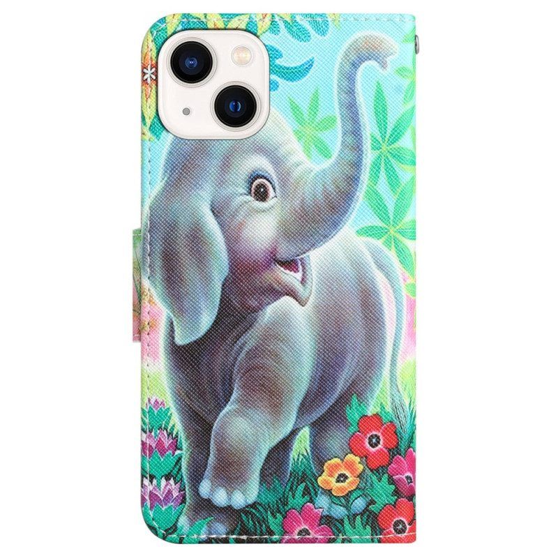 Flip Case Für iPhone 15 Mit Kordel Lanyard Elephant Walk