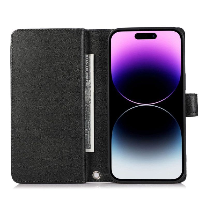 Schützen Sie Ihr Gesamtes Iphone 15 Plus Mit Dieser Spaltlederhülle Mit Mehreren Karten, Vordertasche Und Riemen.