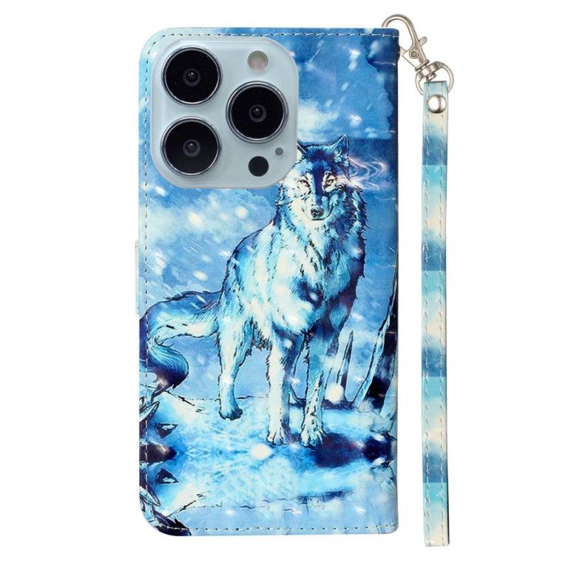 Flip Case Für iPhone 15 Pro Max Mit Kordel 3d-wolf Mit Riemen
