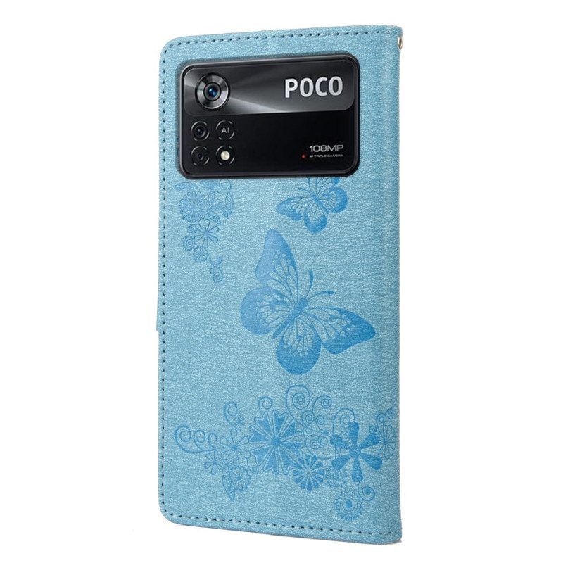 Flip Case Für Poco X4 Pro 5G Mit Kordel Hübsche Schmetterlinge Mit Riemen