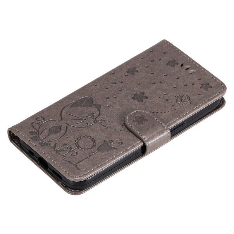 Flip Case Für Realme C35 Mit Kordel Katzenblumen-bienen-strappy