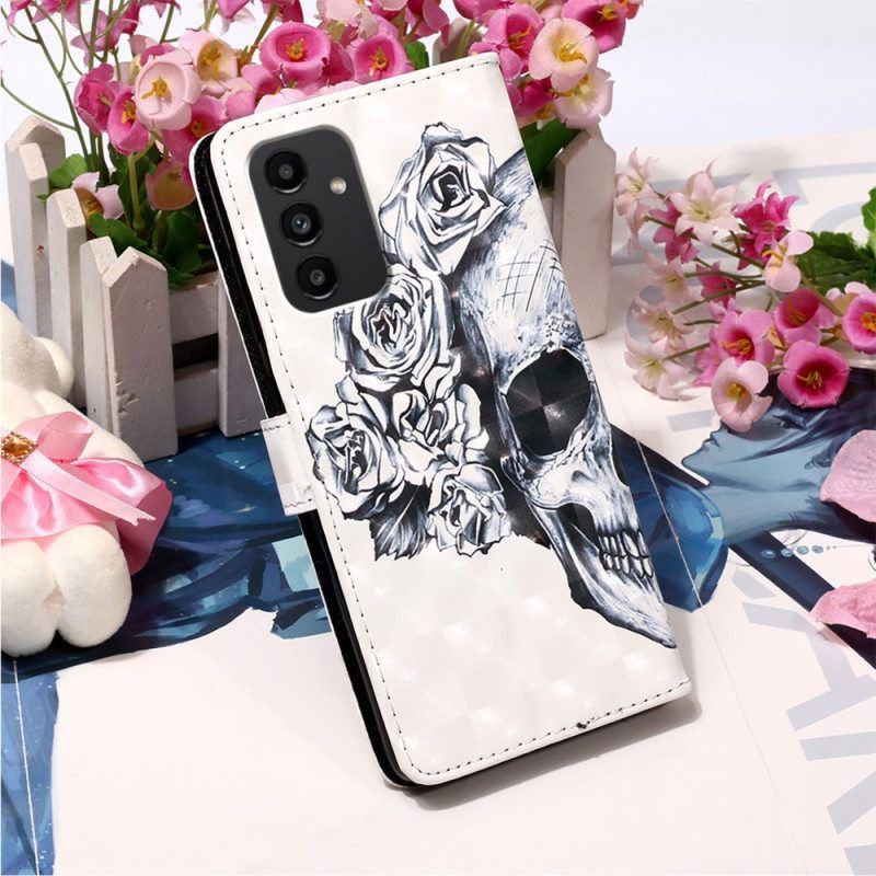 Flip Case Für Samsung Galaxy A54 5G Mit Kordel Blumenschädel Mit Riemen