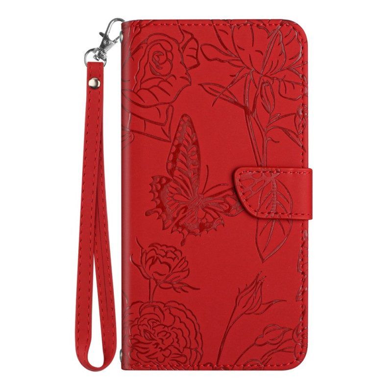 Flip Case Für Samsung Galaxy S23 5G Schmetterling Mit Schlüsselband