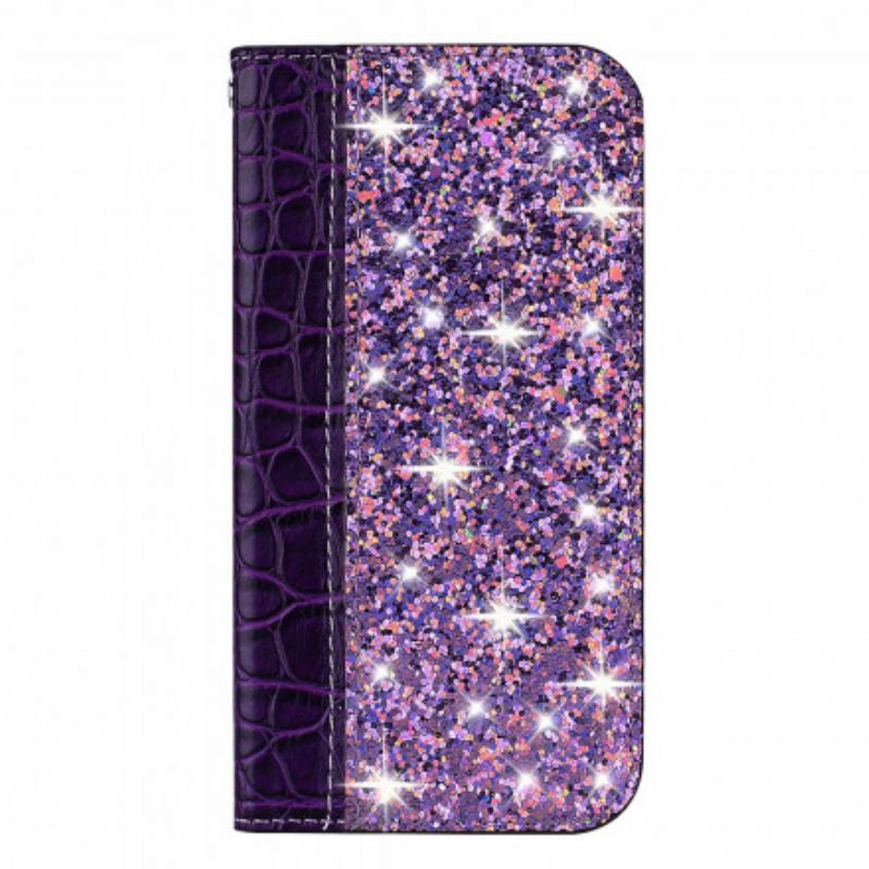 Flip Case Iphone 13 Krokodilhaut Und Glitzereffekt