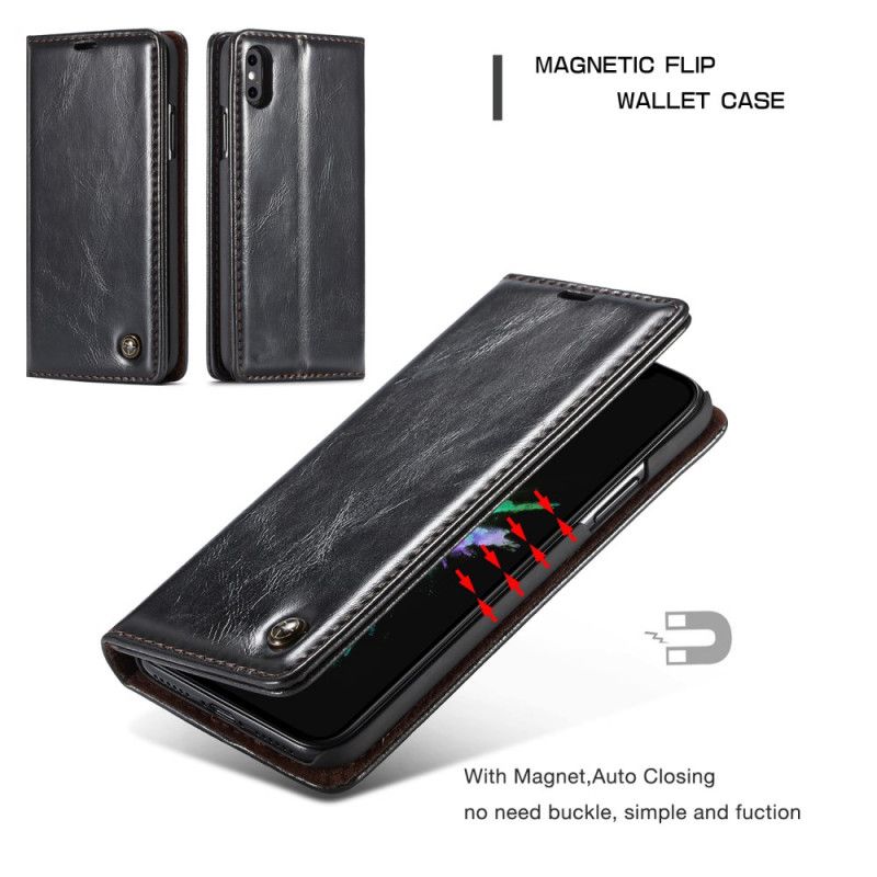 Ihr iPhone XS Max ist durch ein Öl geschützt Leather Effect Flip Cover der Marke CASEME: ein Muss!