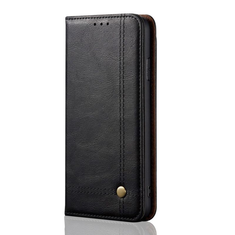 Flip Case OnePlus 8 Pro Schwarz Handyhülle Genähter Ledereffekt