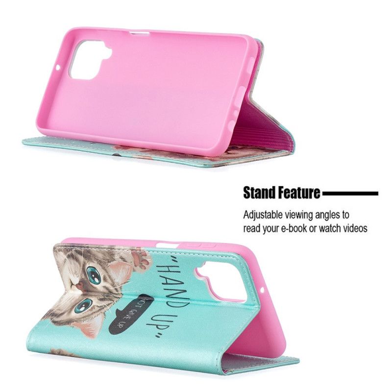 Ihr Das Samsung Galaxy A12 ist mit dieser mit einer Hand-Up-Katze verzierten Klappabdeckung absolut sicher.
