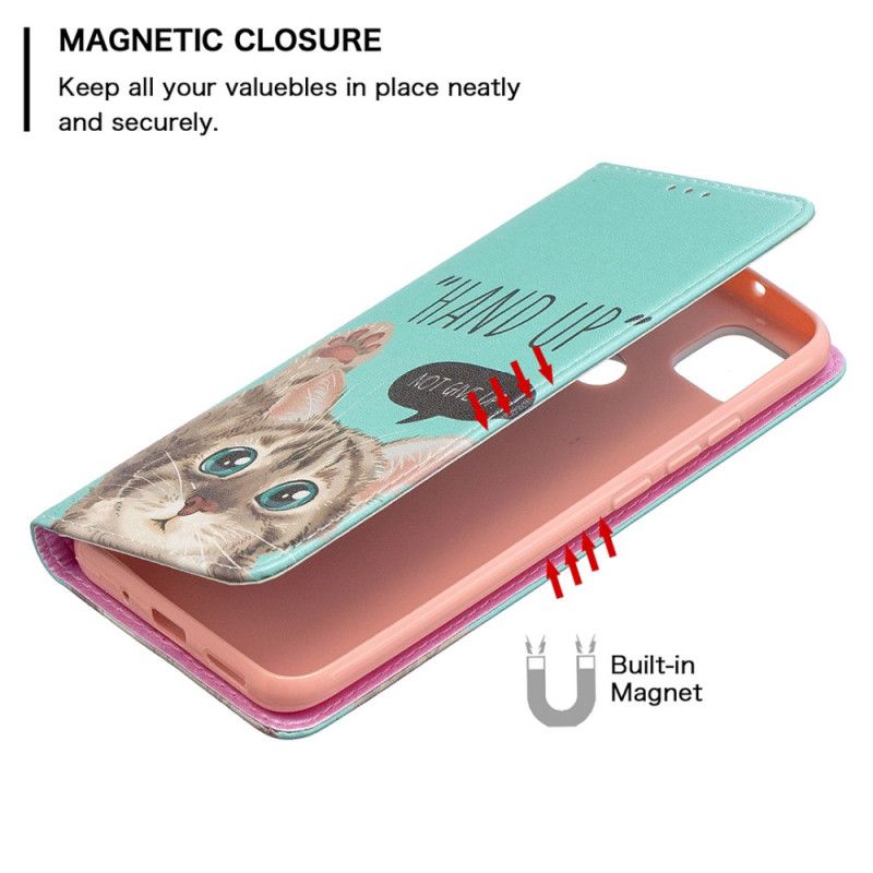 Ihr Xiaomi Redmi 9C ist mit dieser mit einer Hand-Up-Katze verzierten Klapphülle in perfekter Sicherheit.