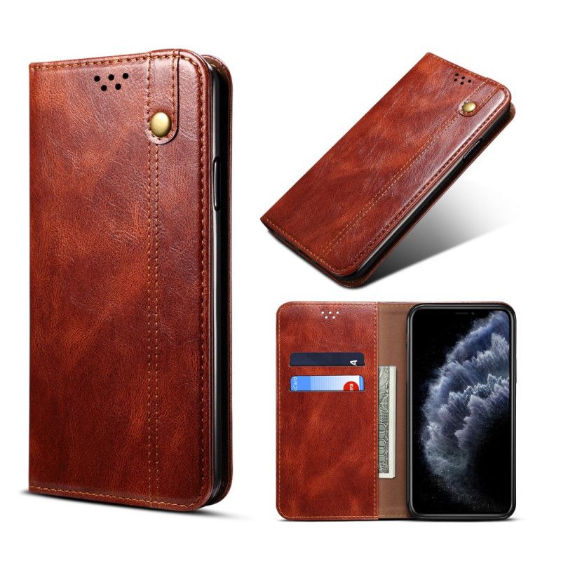 Dieses iPhone XS Max Flip Cover aus gewachstem Kunstleder passt perfekt zum Handy und bietet optimalen und einzigartigen Schutz.
