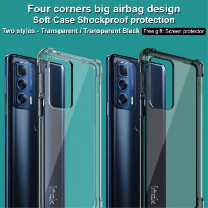 Eine Transparente Hülle Von Imak, Die Das Motorola Edge 20 Pro Perfekt Schützt Und Mit Einer Folie Für Den Bildschirm Geliefert Wird.