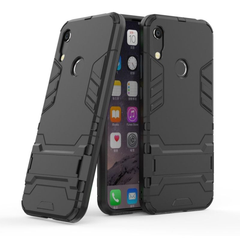 Schützen Sie Ihr Honor 8A / Huawei Y6 2019 auf äußerst widerstandsfähige und clevere Weise mit dieser High-End-Abdeckung, die mit einer Lasche ausgestattet ist, die als Unterstützung dient.