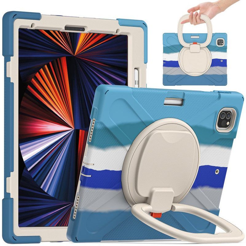 Schützen Sie Ihr Ipad Pro 12.9" (2022) (2021) (2020) Mit Dieser Extrem Widerstandsfähigen Color-Hülle, Die Mit Einem Drehbaren Ring Ausgestattet Ist, Der Als Freihändige Halterung Und Griff Dient.