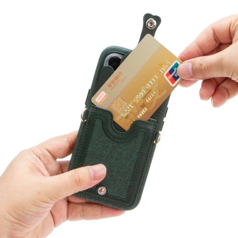 Ihr Iphone 14 Ist Perfekt Geschützt Mit Dieser Hülle, Die Mit Einem Elefanten-Kartenhalter Und Einem Umhängeband Ausgestattet Ist.