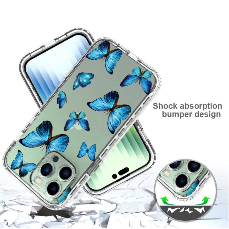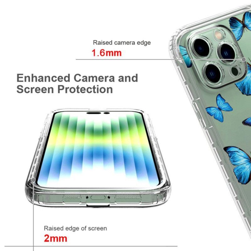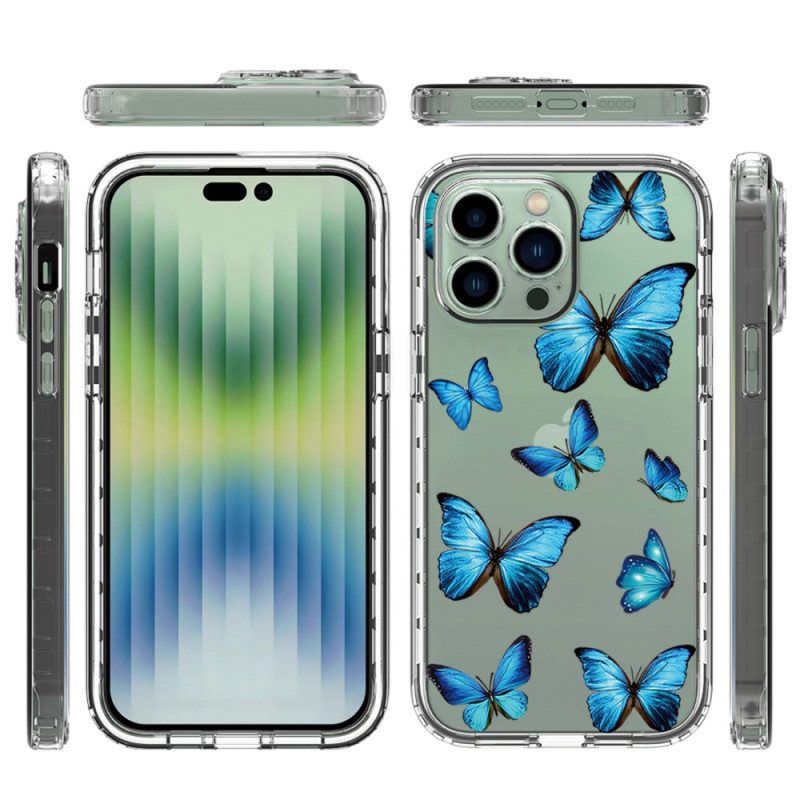 Diese Wunderschöne Verstärkte Hülle, Die Mit Blauen Schmetterlingen Verziert Ist, Zeigt Nur Das Muster Auf Ihrem Iphone 14 Pro Max.
