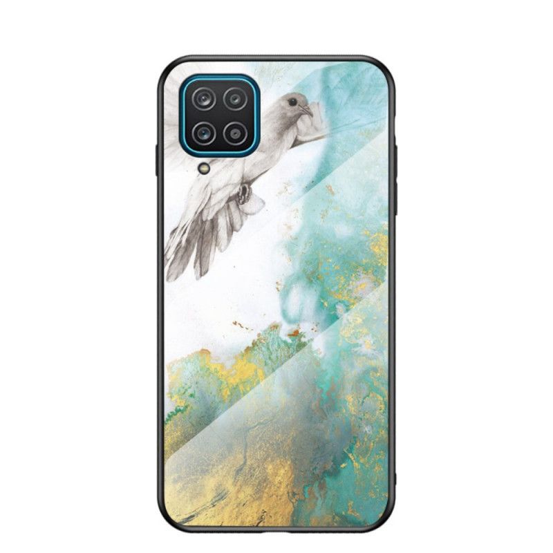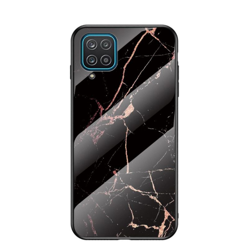 Hülle Für Samsung Galaxy A12 Schwarz Gehärtetes Premium-Farbglas