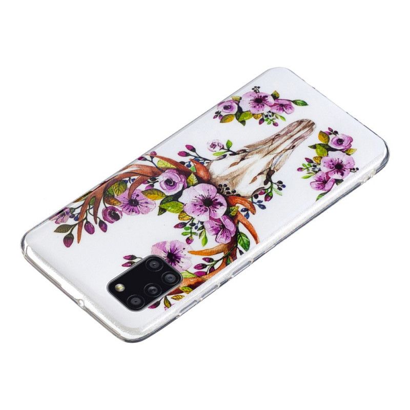 Hülle Für Samsung Galaxy A31 Fluoreszierender Blühender Elch