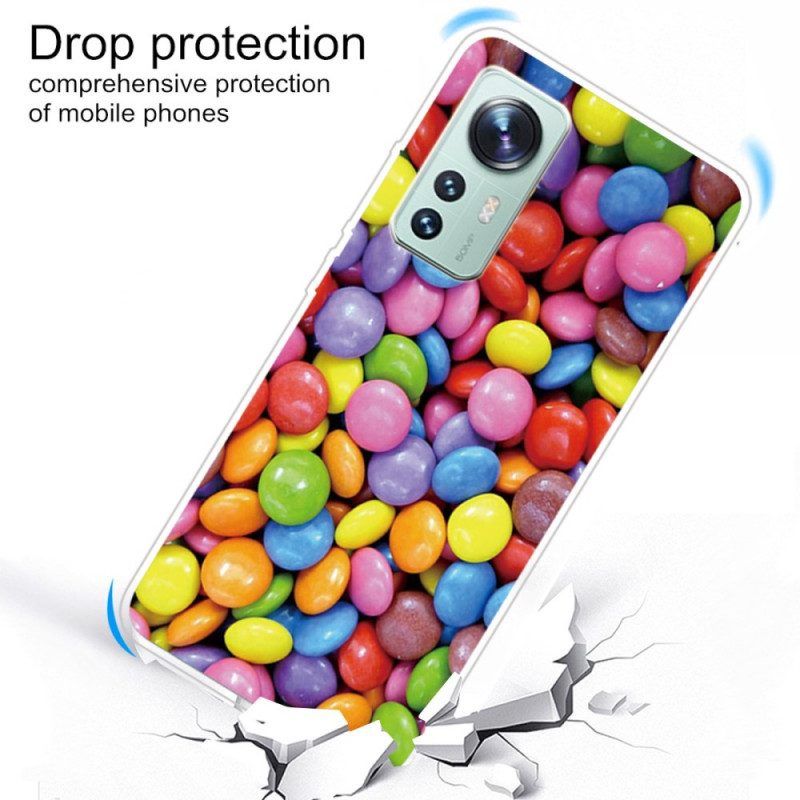 Schützen Sie Ihr Xiaomi 12 Pro Sicher Mit Dieser Flexiblen Silikonhülle, Die Mit Bonbons Verziert Ist.