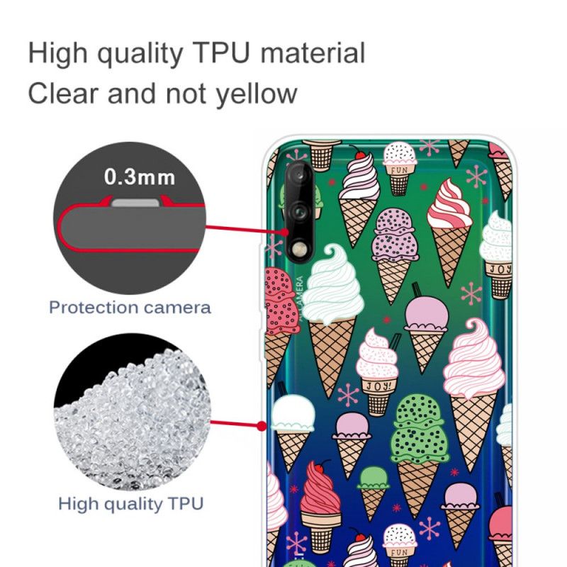 Hier ist ein einzigartiges Gehäuse aus transparentem, flexiblem Silikon, das mit Eiscreme dekoriert ist. Farbige Creme: Perfekt für das Huawei P40 Lite E. / Y7p für Feinschmecker.