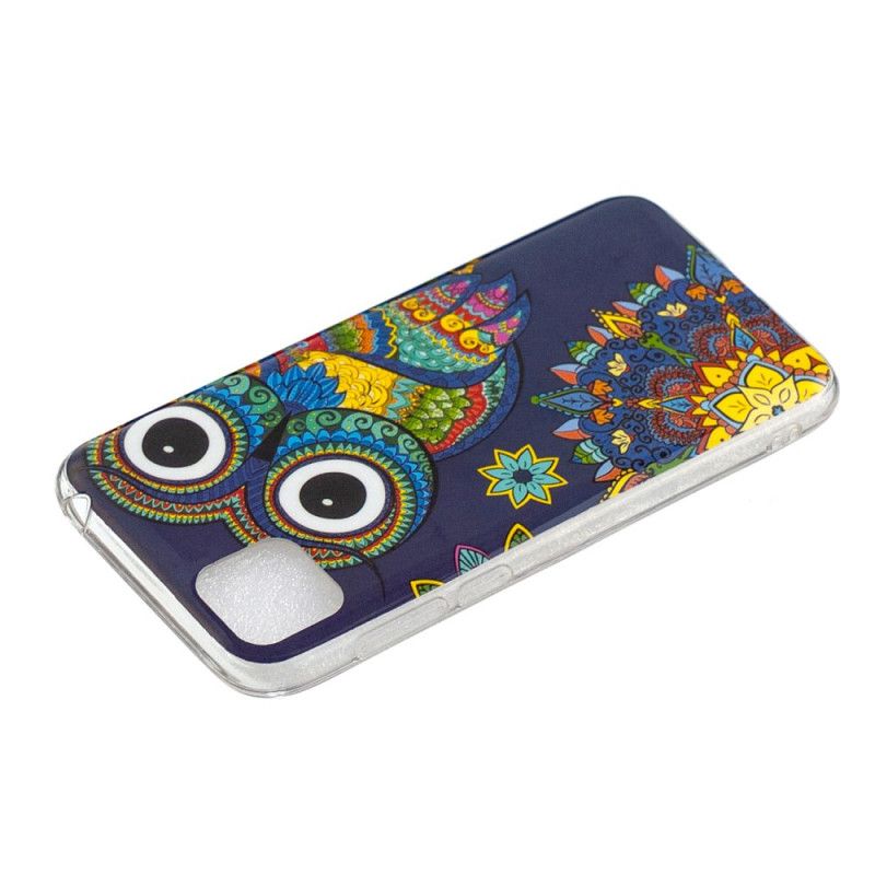 Eine farbenfrohe Eule und ein Mandala, die Ihr Huawei Y5p auf originelle und persönliche Weise schützen.