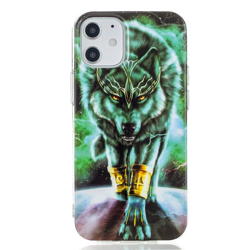 Entdecken Sie die mit fluoreszierenden Wölfen verzierten Gehäuseserien Um Ihr iPhone 12 Mini zu sichern.