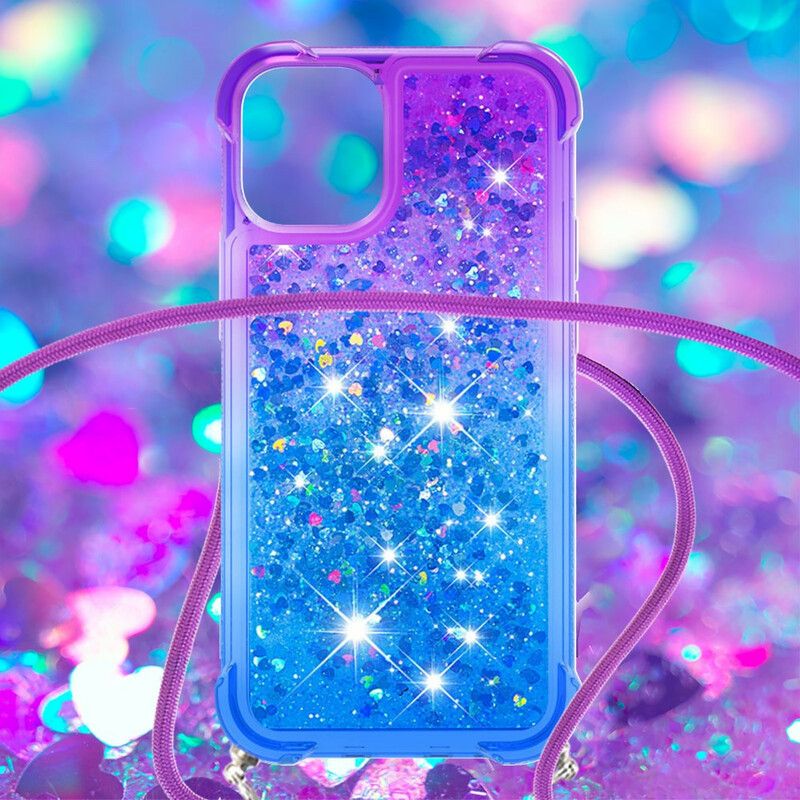 Ein wunderbares Glitzeretui aus Silikon mit einer praktischen Kordel, um Ihr iPhone 13 auf erstklassige Weise zu sichern.