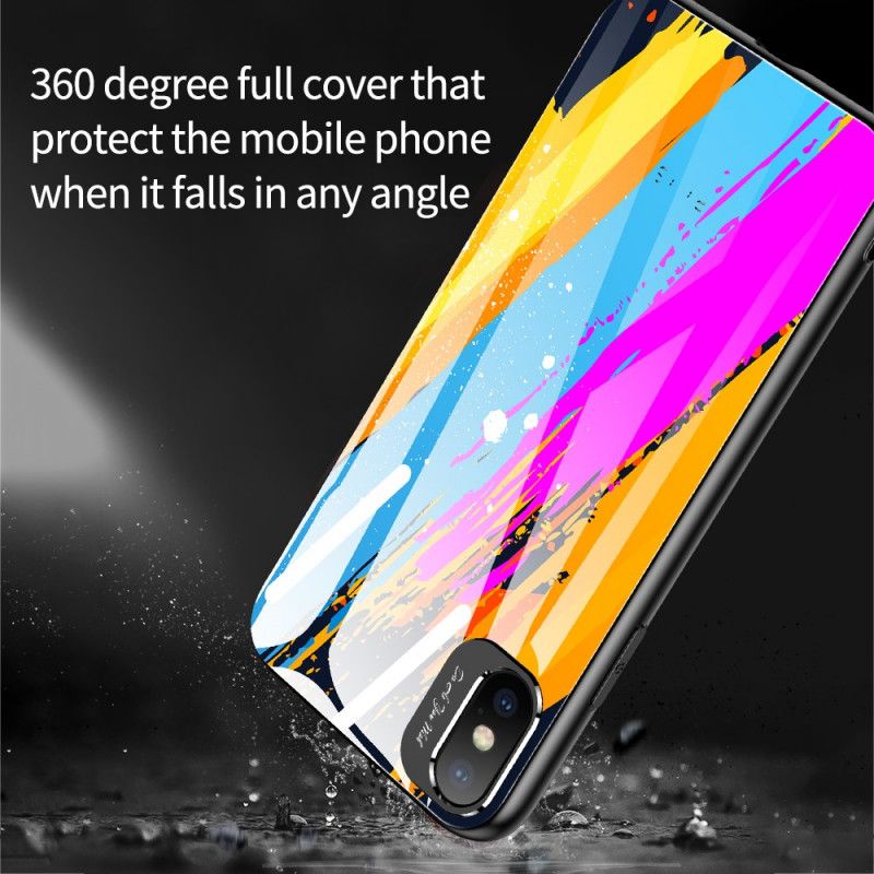 Eine Originalhülle aus gehärtetem Glas mit einem künstlerischen Muster, das Ihr iPHone XS Max durch ein farbenfrohes Design ideal ausstattet.