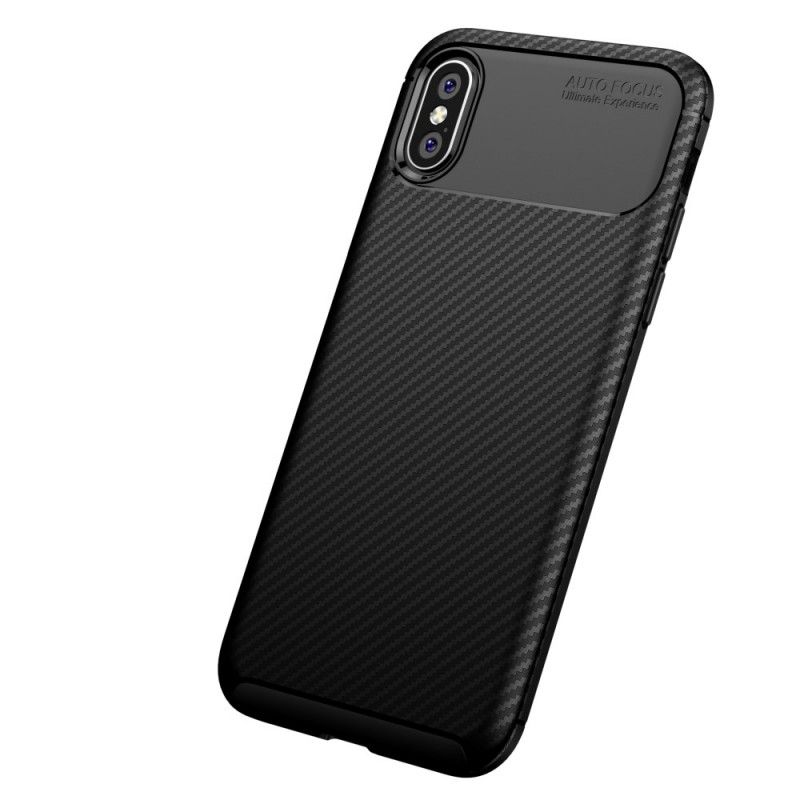 Die flexible Hülle mit Kohlefaser-Textur für das iPhone XS ist sehr dünn, leicht und extrem widerstandsfähig.