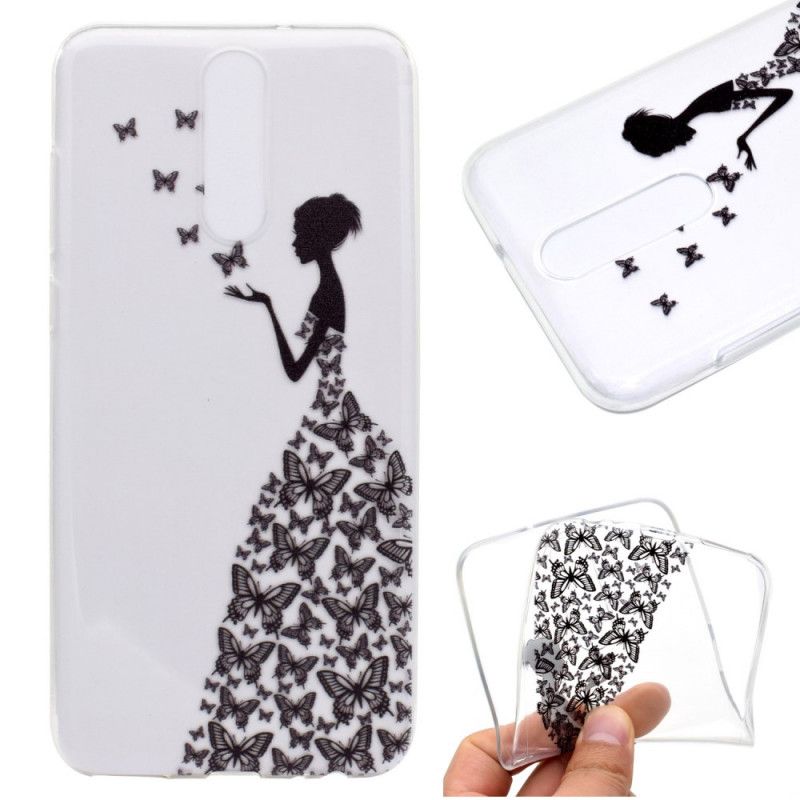 Eine transparente Hülle, dekoriert mit einer Frau mit einem Schmetterlingskleid, die sich in die feinen Kurven Ihres OnePlus 8 einfügt.