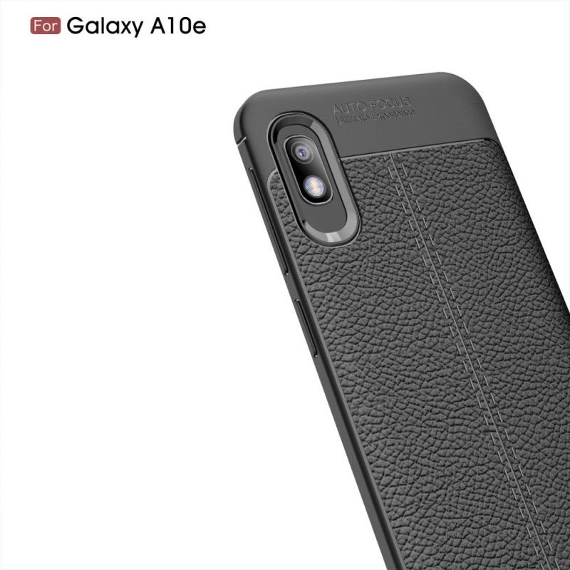 Hülle Samsung Galaxy A10E Schwarz Doppellinien-Litschileder-Effekt