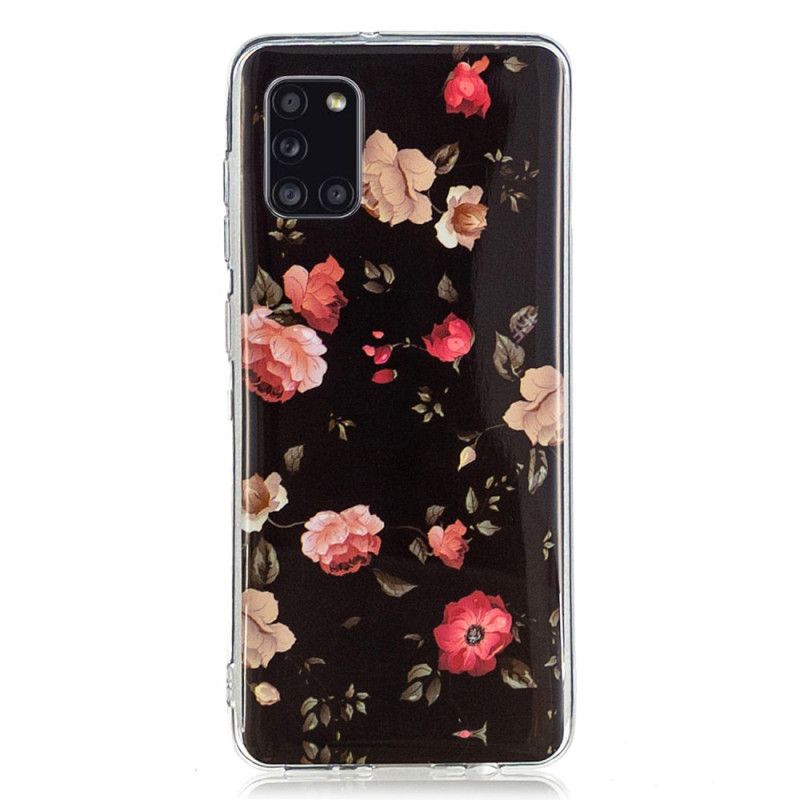 Hülle Samsung Galaxy A31 Schwarz Fluoreszierende Blumenserie