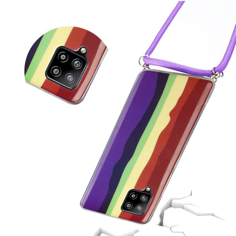 Eine wundervolle Regenbogenhülle mit einem praktischen Kabel, mit dem Sie Ihr Samsung Galaxy A42 5G auf erstklassige Weise sichern können.