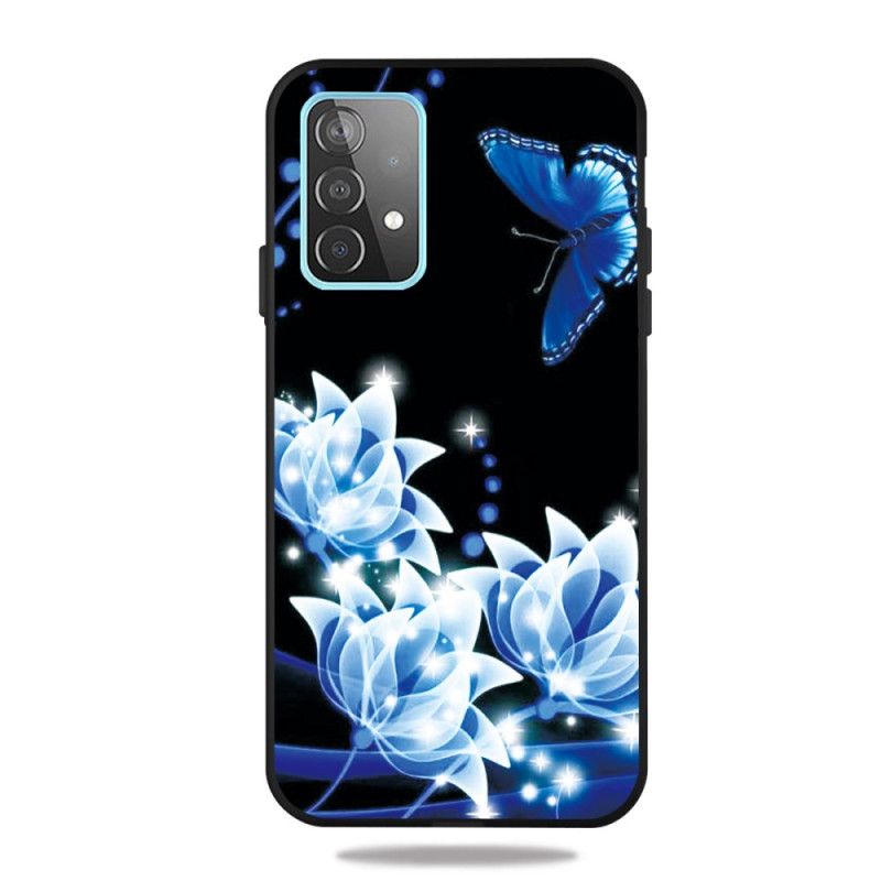 Wunderschön blaue Blumen auf einer hochwertigen Silikonhülle, um die Rückseite und die Kanten Ihres Samsung Galaxy A72 4G / A72 5G optimal zu sichern.