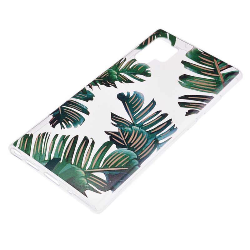 Ihr Samsung Galaxy Note 10 Plus ist wunderschön, wenn es mit dieser transparenten, flexiblen Silikonhülle geschützt wird, die mit grünen Blättern verziert ist.