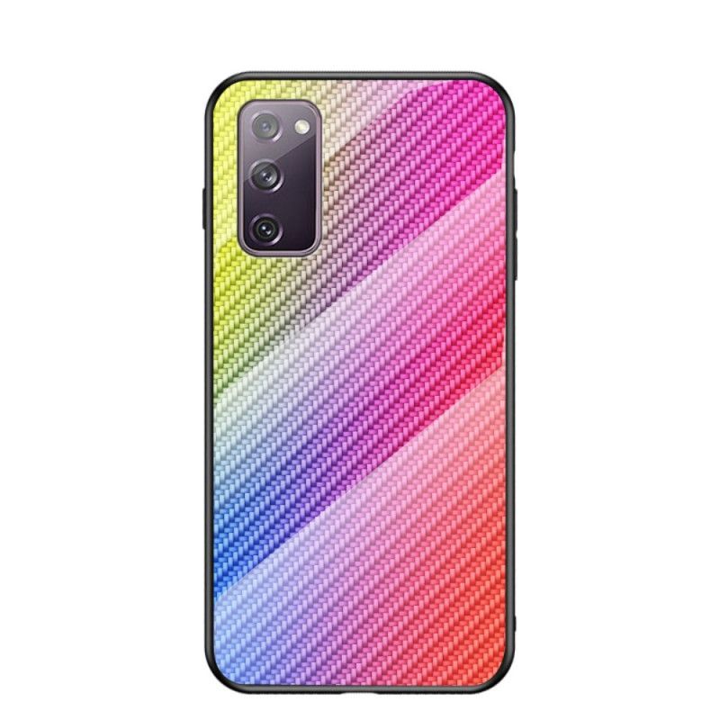 Bieten Sie Ihrem Samsung Galaxy S20 FE mit diesem einzigartigen Gehäuse aus gehärtetem Glas, Silikon und Kohlefaser einen äußerst widerstandsfähigen und eleganten Schutz.