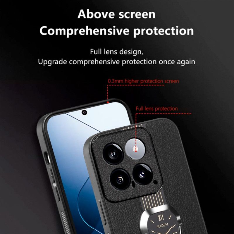 Dieses Kadem Xiaomi 14-Gehäuse Verfügt Über Ein Einzigartiges Uhrenmuster Und Einen Faltbaren Ständer.