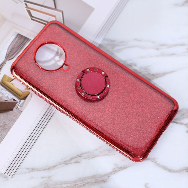Die Ring-Supprt-Hülle mit Glitzer und Diamanten sichert den Xiaomi Poco F2 Pro auf feine und clevere Weise.