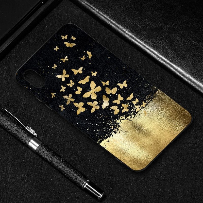 Schützen Sie Ihr Xiaomi Redmi 7A luxuriös mit dieser hochwertigen, flexiblen Silikonhülle, die mit wunderschönen goldenen Schmetterlingen verziert ist.