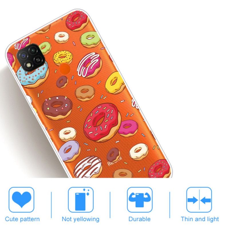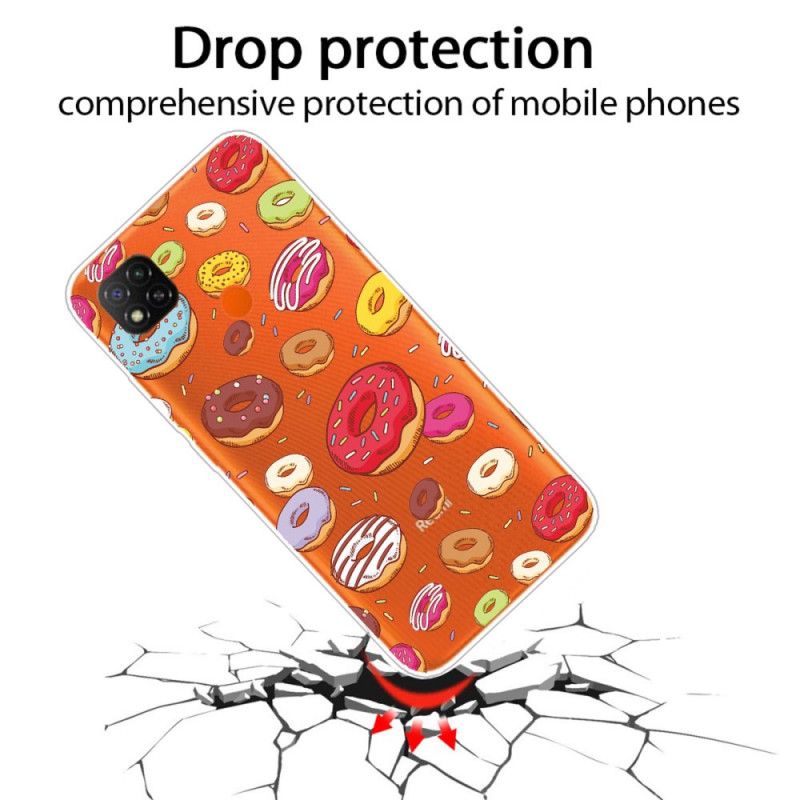 Voll mit Donuts auf einer transparenten Silikonhülle, um Ihr Xiaomi Redmi 9C effektiv und angenehm zu genießen.