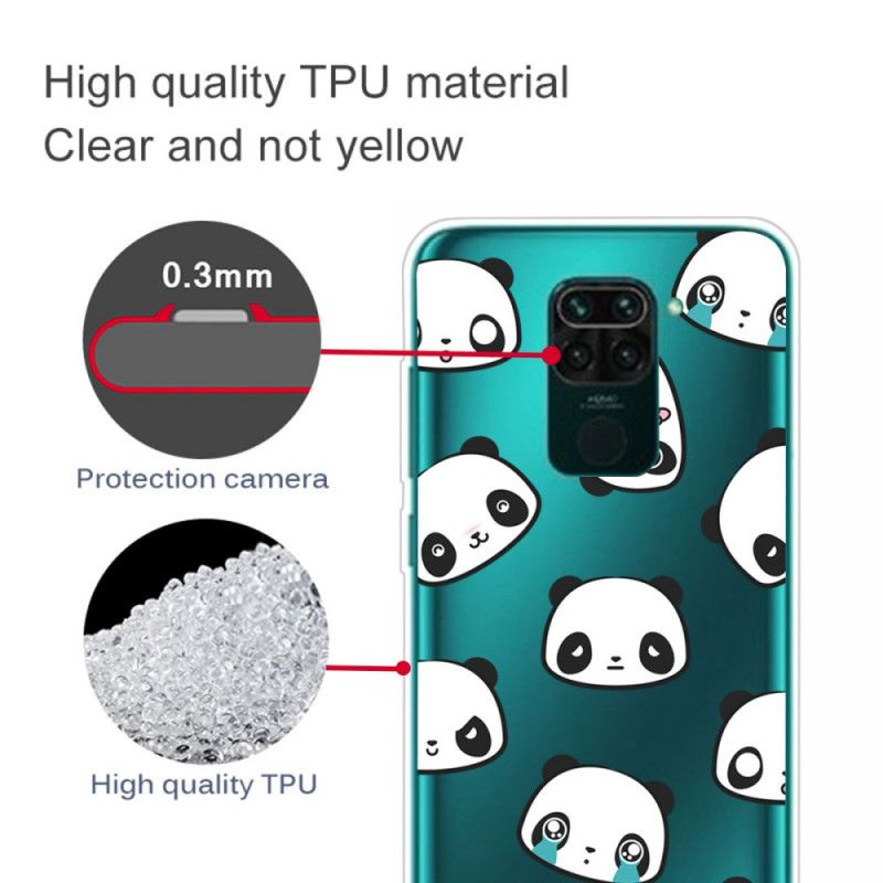 Das berühmte transparente Gehäuse von Pandas Sentimantaux aus flexiblem Silikon ist perfekt an das Design des Xiaomi Redmi Note 9 angepasst.