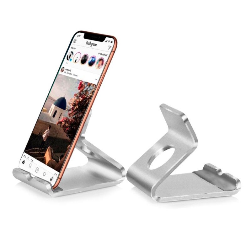 Mit dem Desktop-Ständer aus Aluminiumlegierung können Sie Ihr Smartphone auf Ihrem Schreibtisch halten.