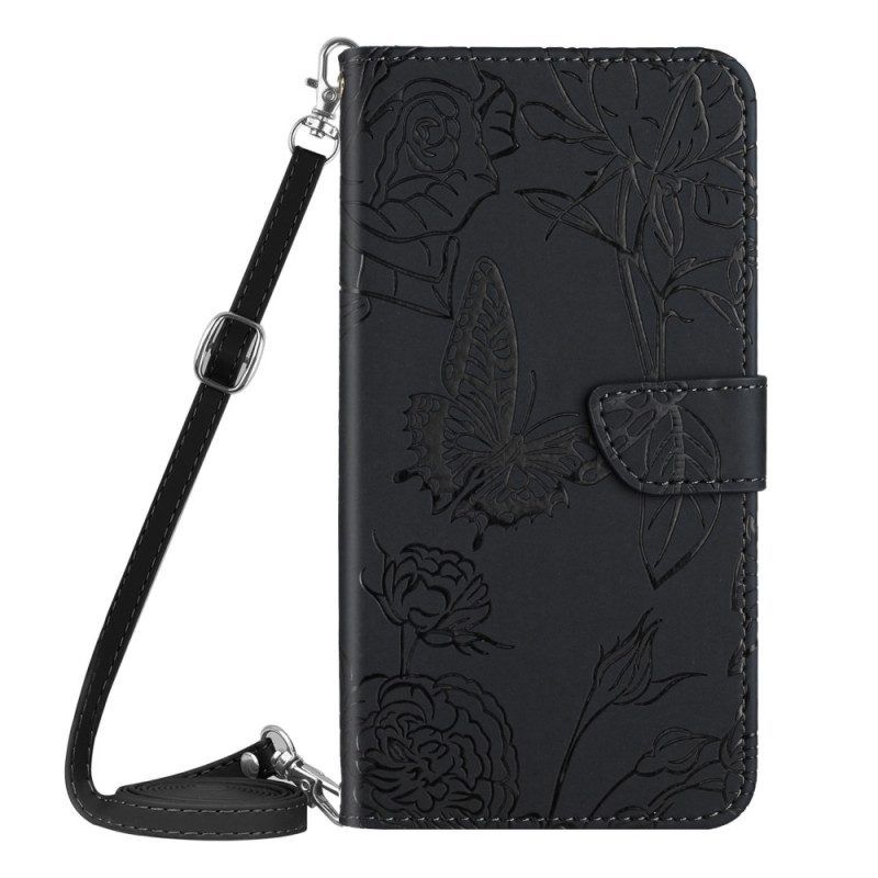 Die Kunstlederhülle Mit Schmetterlingsmuster Wird Mit Einem Verstellbaren Schultergurt Geliefert, Um Das Honor 70 Einfach Zu Tragen.