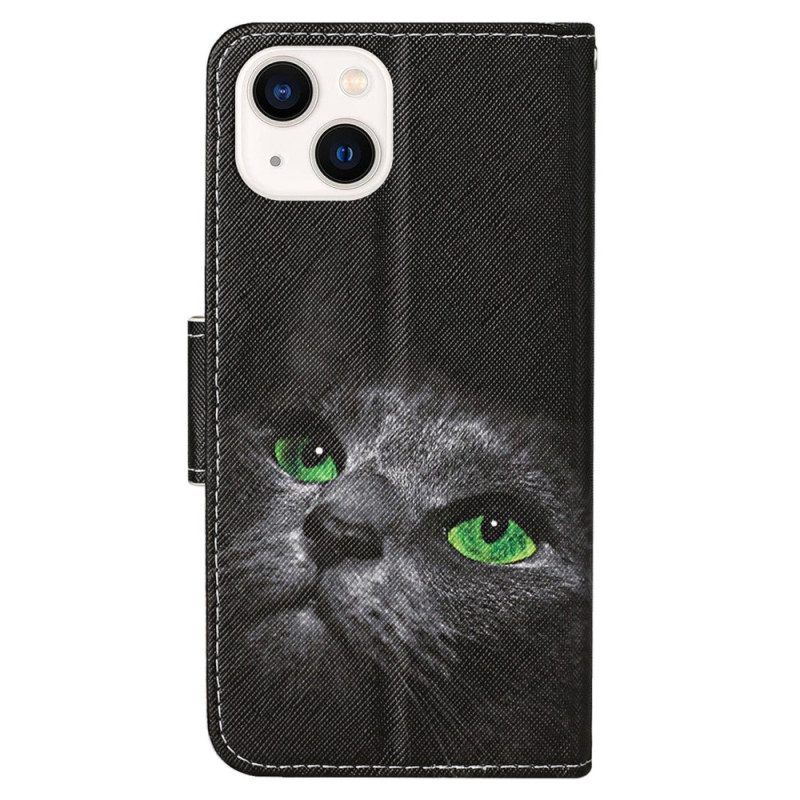 Ihr Iphone 15 Ist Mit Dieser Green Eyes Cat-Riemenhülle, Die Als Brieftasche Und Halterung Verwendet Werden Kann, Vollständig Geschützt.