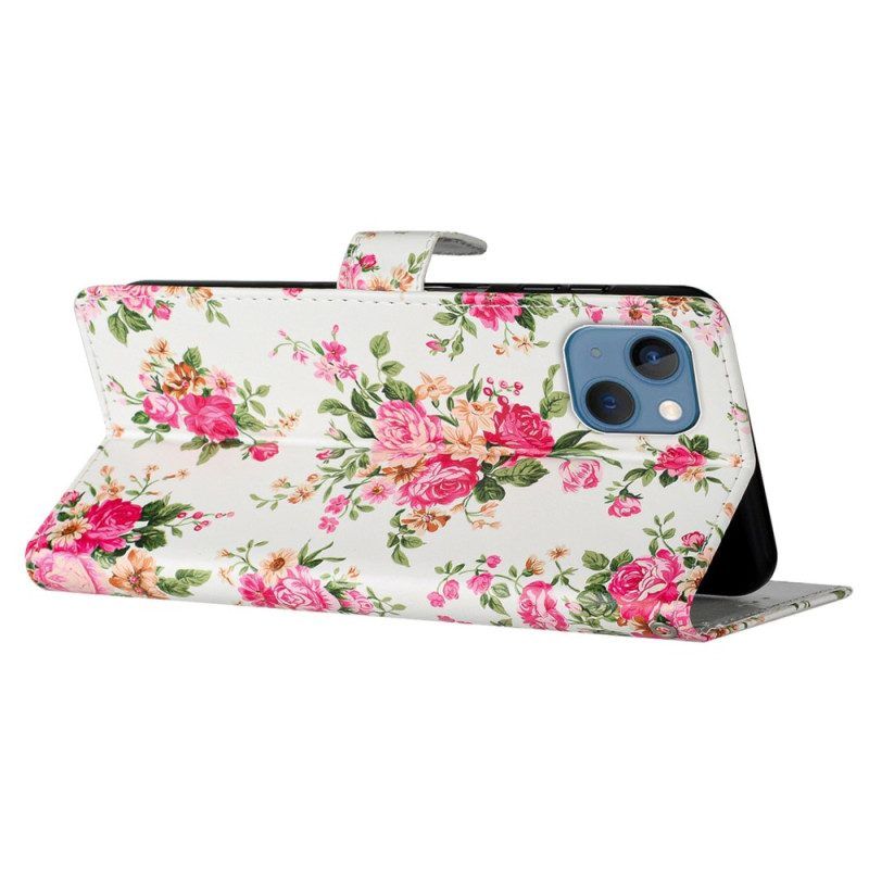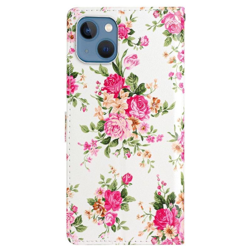 Lederhüllen Für iPhone 15 Plus Mit Kordel Blumen Mit Riemen