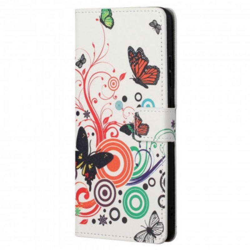 Lederhüllen Für Motorola Edge 20 Pro Schmetterlinge Und Blumen