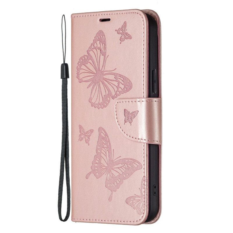 Lederhüllen Für Samsung Galaxy A14 / A14 5G Mit Kordel Riemchen Mit Schmetterlingen-print