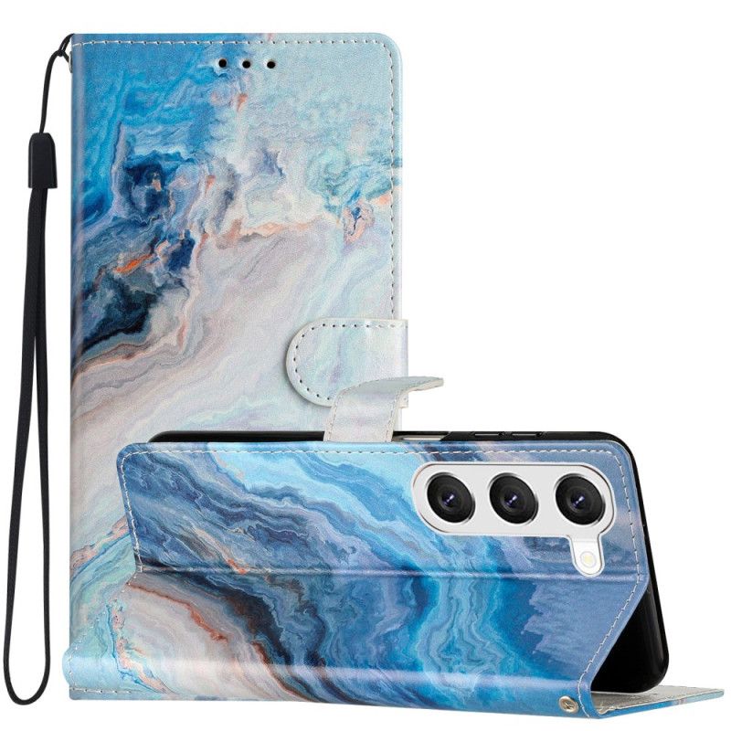 Lederhüllen Für Samsung Galaxy S24 5g Blauer Marmor In Lanire