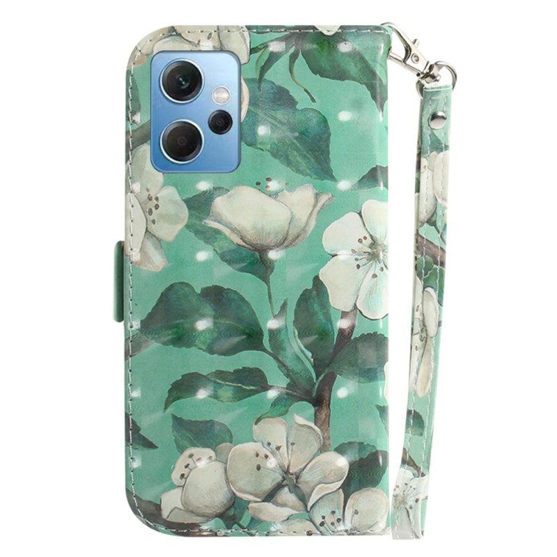 Lederhüllen Für Xiaomi Redmi Note 12 4G Mit Kordel Weiße Riemchenblumen