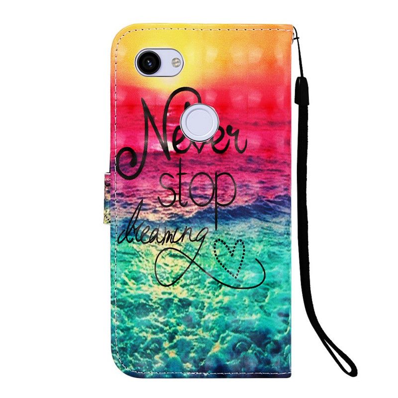 Die Abdeckung Never Stop Dreaming schützt Ihre Google Pixel 3A fein und sehr effizient Als Brieftasche dienend.