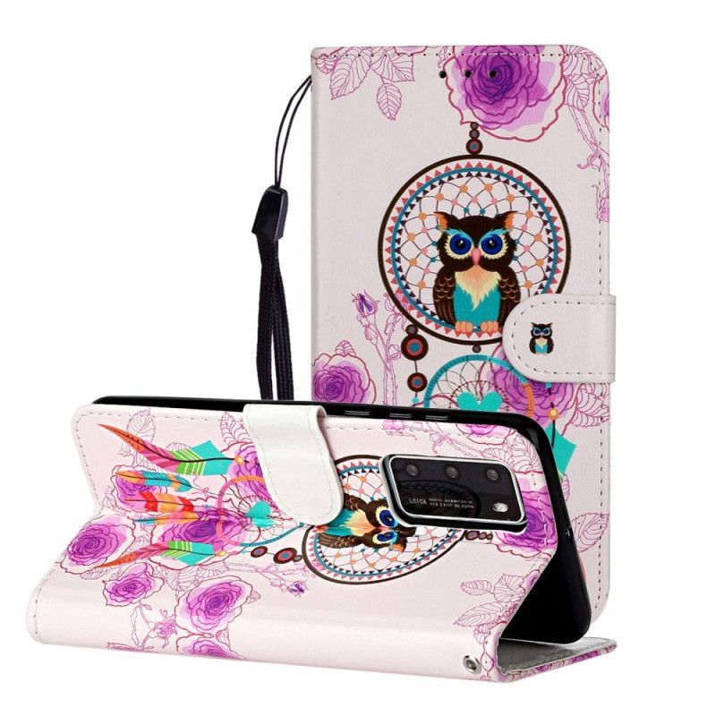 Ein hervorragendes Leder mit Effektabdeckung für das Huawei P40 im Dreamcatcher-Design mit einer wohlwollenden Eule.