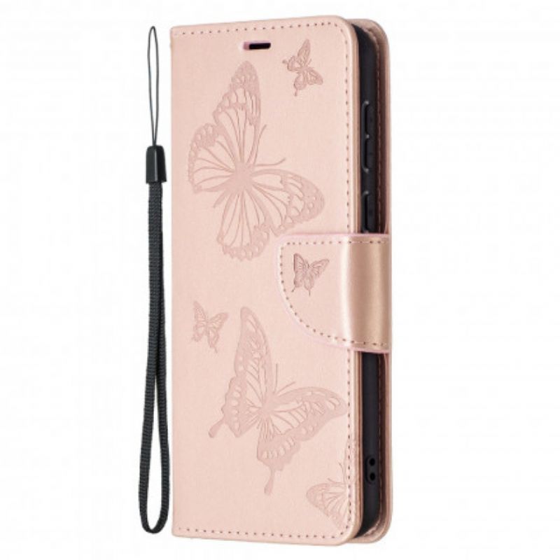 Lederhüllen Huawei P50 Handyhülle Schmetterlinge Und Schräge Klappe